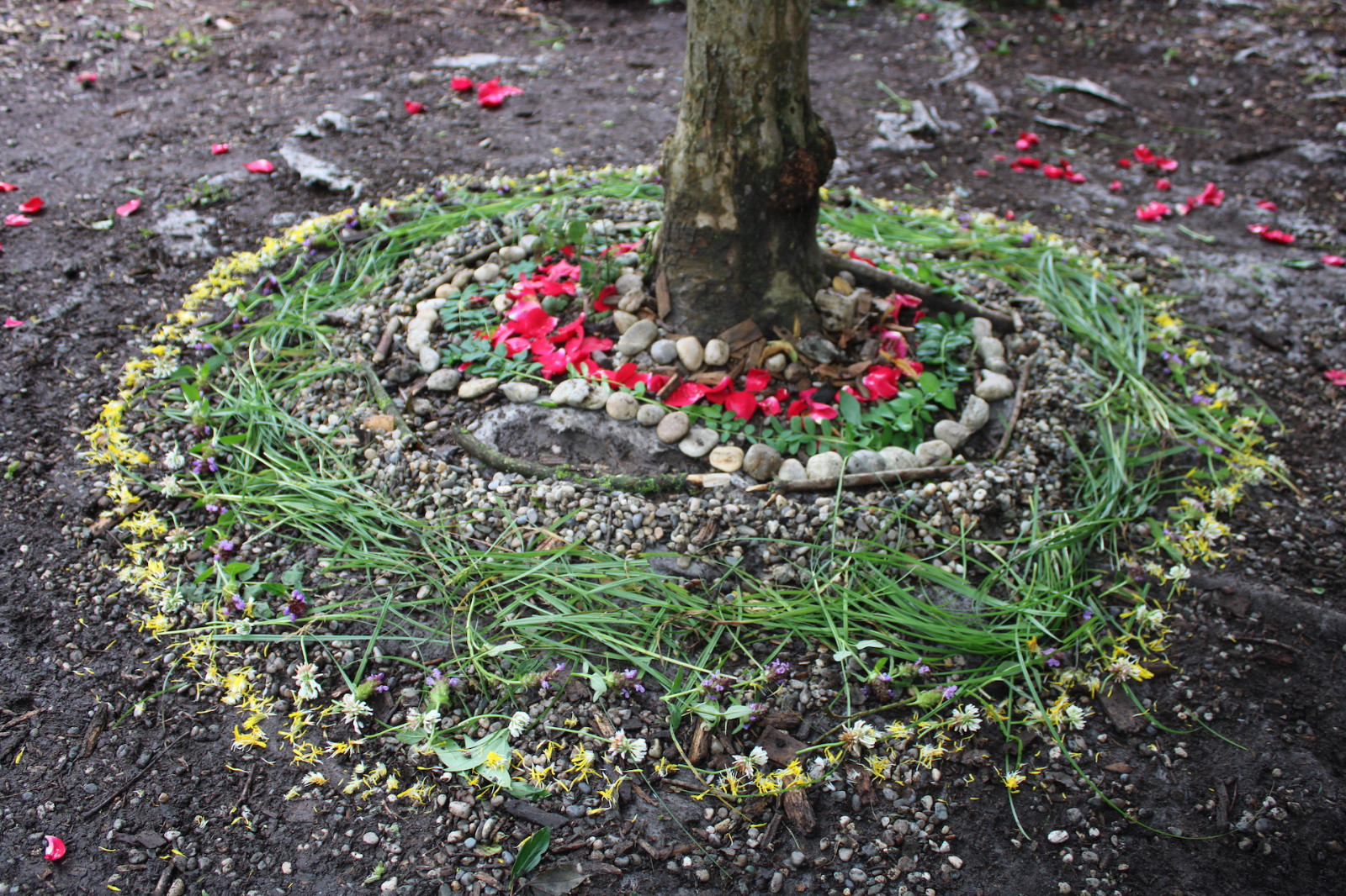 Mit Blüten, Gräsern, Ästen, Steinen, Kies und an Bäumen entstanden Land-Art typische Formen und Anordnungen, wodurch der Pausenhof quasi zum „Museum“ wurde. In gemeinsamen Unterrichtsgängen wurden die entstandenen Kunstwerke besprochen und gewürdigt. Inspiration holten sich die Kinder von dem britischen Land-Art Künstler Andy Goldsworthy, dessen Fotografien seiner LandArt vorher betrachtet wurden und großartige Anregungen für die eigene Gestaltung boten. Die Schüler*innen hatten großen Spaß bei dieser Arbeit im Freien und konnten auch wunderbar Bilanz ziehen und vergleichen. Vor den Weihnachtsferien wurde schon einmal an Land-Art im Pausenhof gearbeitet. Spannend zu sehen waren bei den Ergebnissen gleiche, aber auch unterschiedliche Naturmaterialien, die je nach Jahreszeit für die Gestaltung der Kunstwerke verwendet wurden.